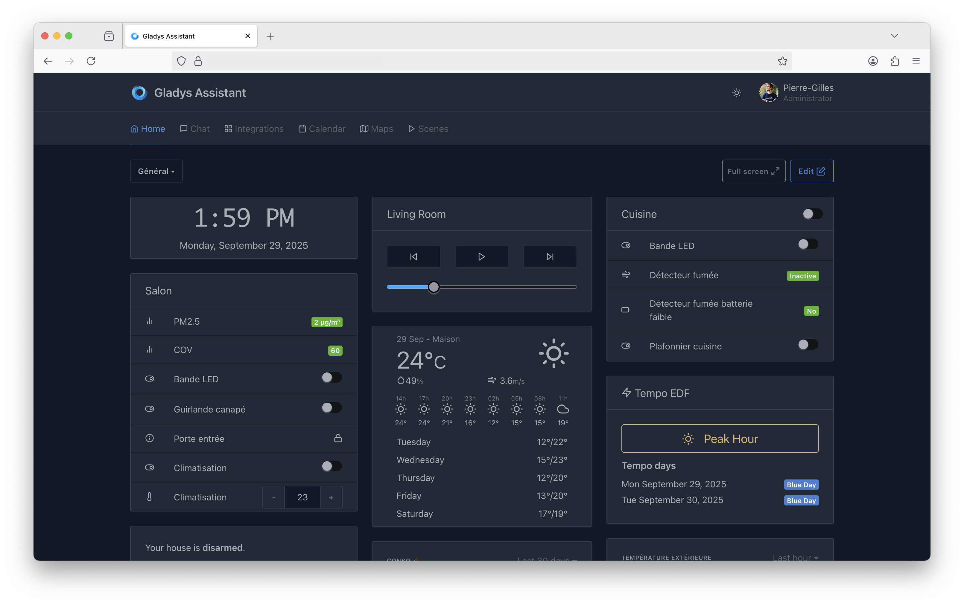 Many of you have been asking for a dark mode in Gladys, and Iโm happy to announce that dark mode is now available in Gladys Assistant 4.63